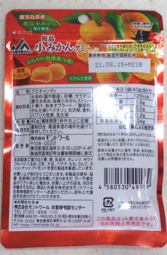 国王にとっては、グミ更新は、休日とはいえ達成感があります。 今回のグミは、JA鹿児島みらいの「桜島小みかんグミ」です。鹿児島に行ったの懐かしいなあ。