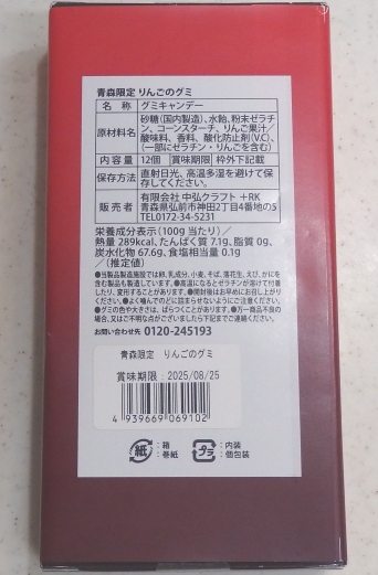買った場所 | 青森の駅で買ったグミです(自分へのお土産)。330円 |