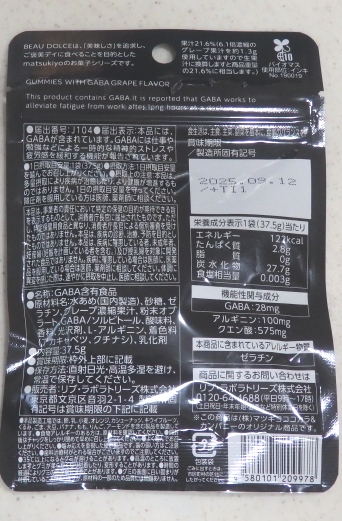 グミ名 | BEAU DOLCE GABA入りグレープグミ |