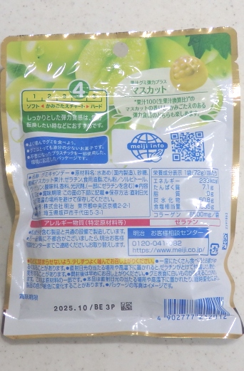| グミ名 | 果汁グミ 弾力プラスマスカット |