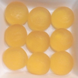 開けてみますと、9個の普通の丸い形のきんかんグミが入っています。